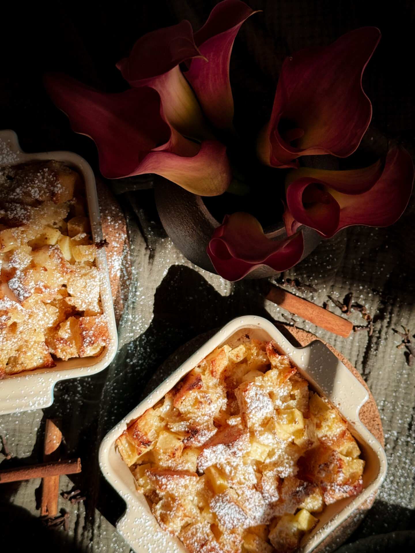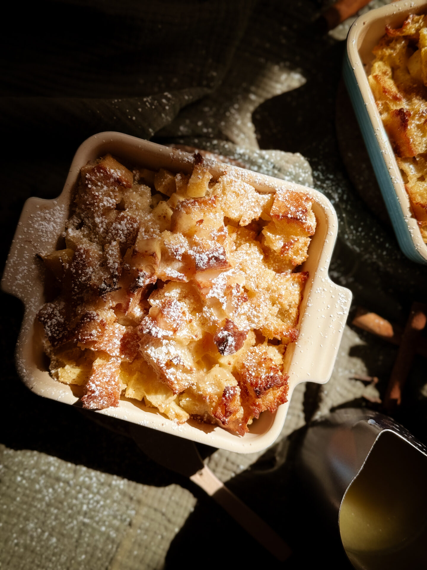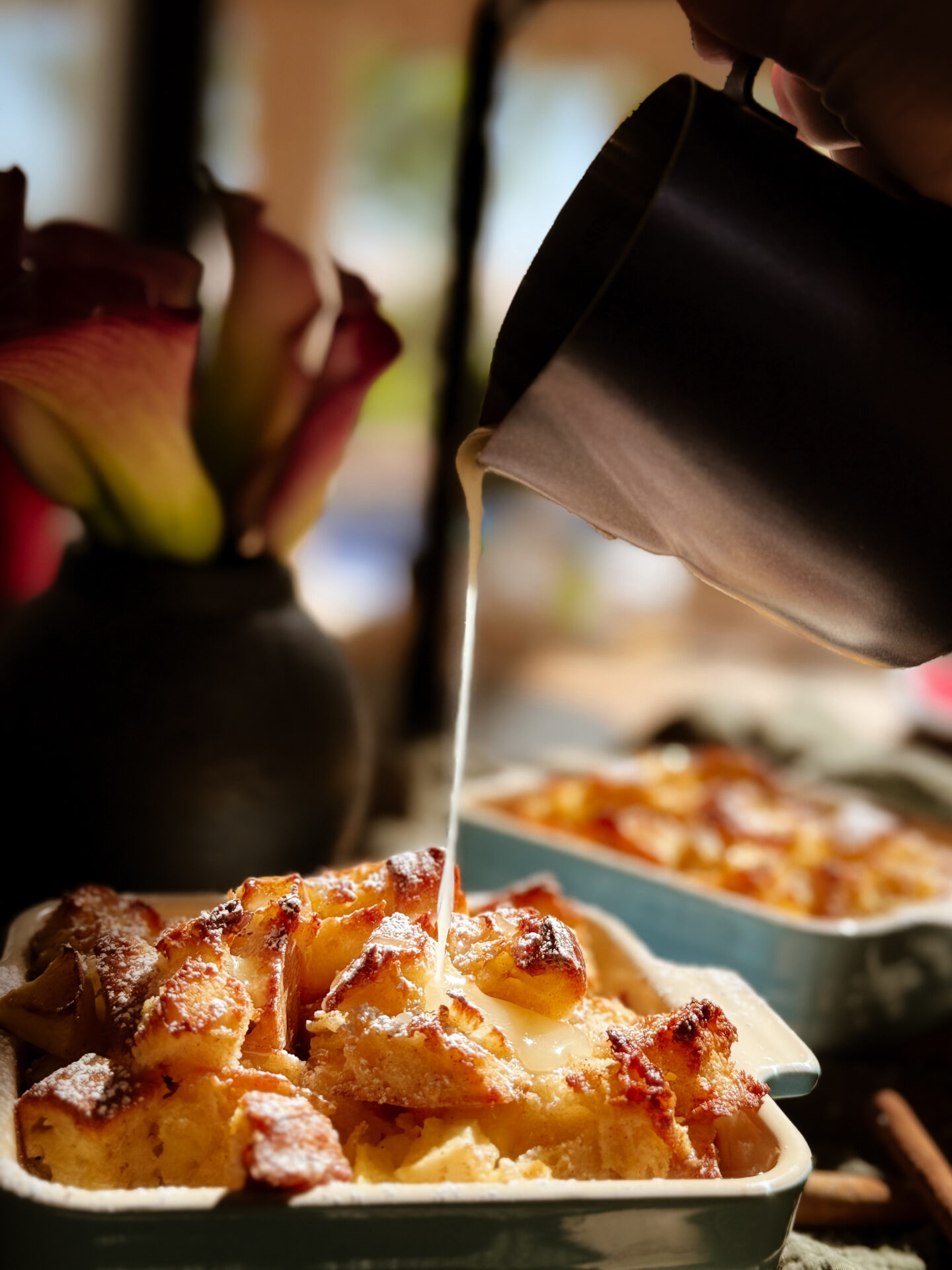 Pour this over the bread and apples and allow to sit for 10-15 min.